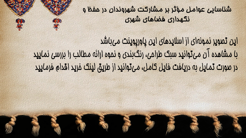 پاورپوینت کامل شناسایی عوامل مؤثر بر مشارکت شهروندان در حفظ و نگهداری فضاهای شهری