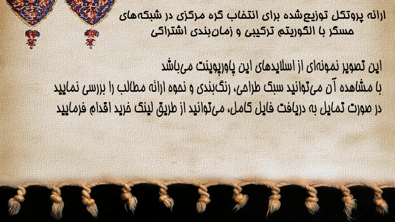 پاورپوینت کامل ارائه پروتکل توزیعشده برای انتخاب گره مرکزی در شبکههای حسگر با الگوریتم ترکیبی و زمانبندی اشتراکی
